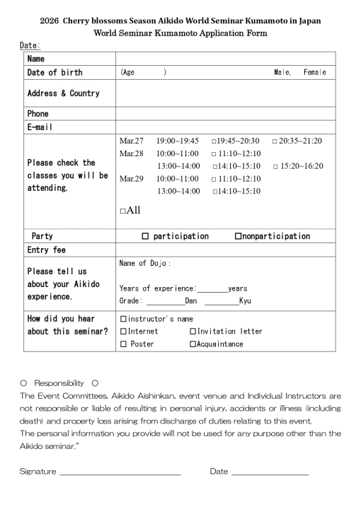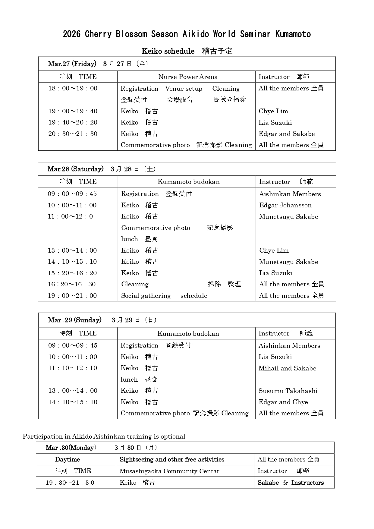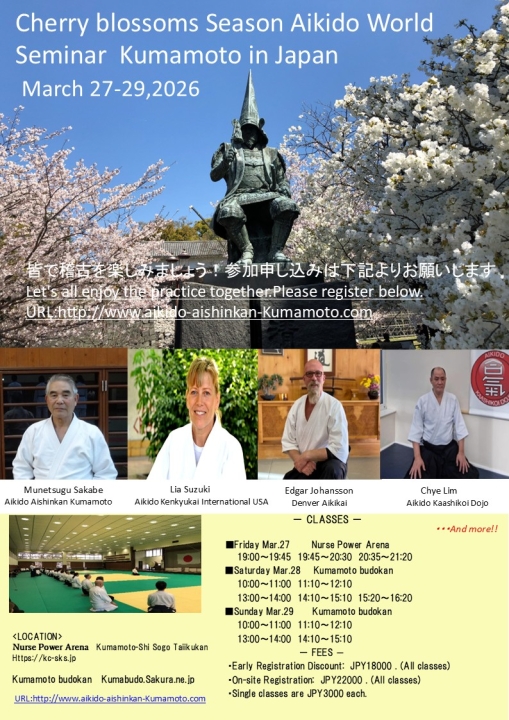 THE ANNUAL AIKIDO WORLD SEMINAR KUMAMOTO WILL OPEN IN KUMAMOTO, JAPAN FROM 3/27(FRI)~3/29(SUN), 2026.